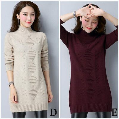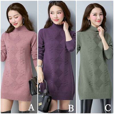 レディース ニット セーター シングルネック ロング丈 長袖 秋 冬 トップス カジュアル 大人 可愛い フェミニン おしゃれ お出かけ デイリー パープル ベージュ オリーブ ホワイト フリーサ