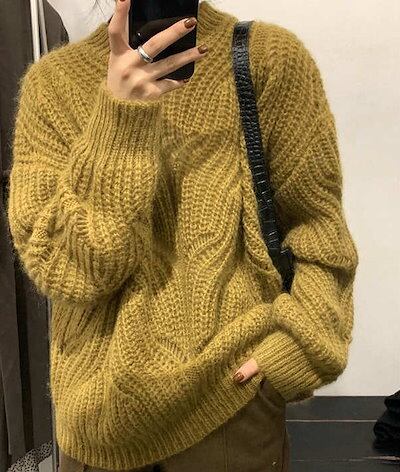 レディース ニット セーター ざっくり ゆるシルエット 長袖 トップス カジュアル 大人可愛い シンプル クール 学生 休日コーデ おしゃれ お出かけ デイリー 普段着 イエロー ネイビー ブラッ