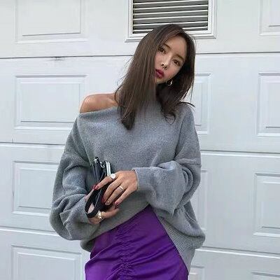 レディース ニット セーター ハイネック ショルダーカット 肩見せ 長袖 トップス カジュアル 大人 可愛い フェミニン おしゃれ お出かけ デイリー 普段着 ブラック ベージュ グレー フリー