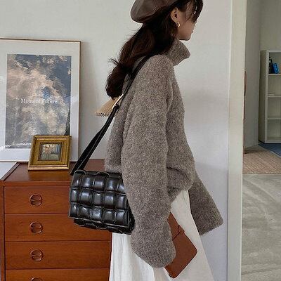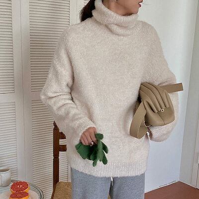 レディース ニット セーター ハイネック タートルネック ざっくり ゆるシルエット 長袖 トップス カジュアル シンプル 大人可愛い フェミニン おしゃれ お出かけ デイリー 普段着 ホワイト