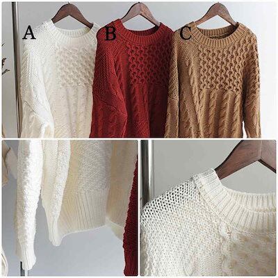 レディース ニット セーター プルオーバー カットソー 長袖 シンプル トップス カジュアル 大人 可愛い フェミニン おしゃれ お出かけ オフィス デイリー 普段着 ホワイト レッド ブラウン