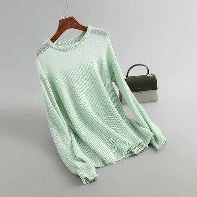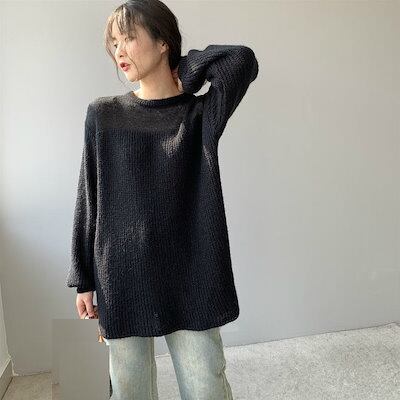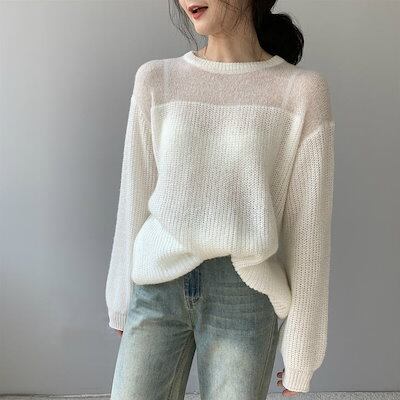 レディース ニット セーター ラウンドネック ざっくり ゆるシルエット 長袖 トップス カジュアル 可愛い シンプル 透け感 おしゃれ お出かけ デイリー 普段着 ホワイト ピンク ベージュ ブ