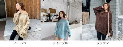 レディース ニット セーター 長袖 カットソー トップス カジュアル 大人 可愛い 大人かっこいい クール おしゃれ お出かけ デイリー 普段着 ベージュ ライトブルー ブラウン フリーサイズ