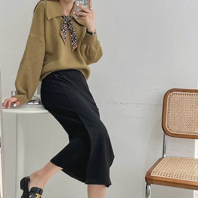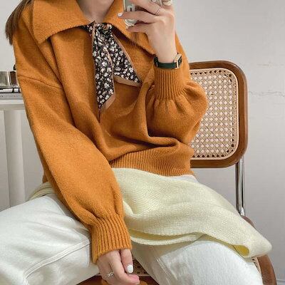 レディース ニット セーター 大きな襟 ざっくり ゆるシルエット 長袖 トップス カジュアル 大人 可愛い フェミニン おしゃれ お出かけ デイリー 普段着 ホワイト レッド オレンジ ベージュ