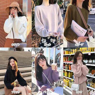レディース ニット セーター 長袖 ゆったり オーバーサイズ トップス 秋 冬 カジュアル 大人 可愛い フェミニン おしゃれ お出かけ オフィス デイリー 普段着 ホワイト カーキ オリーブ ブラ