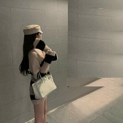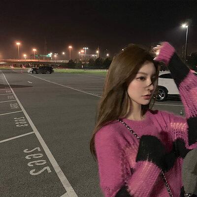 レディース ニット ボーダー ラウンドネック セーター 長袖 トップス カジュアル 透け感 大人かっこいい クール セクシー 学生 休日コーデ おしゃれ お出かけ デイリー 普段着 ベージュ ピン