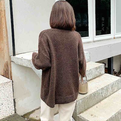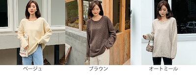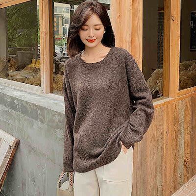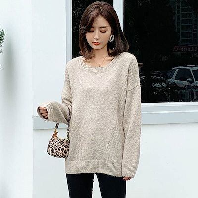レディース ニット ラウンドネック セーター 長袖 カットソー トップス カジュアル 大人 可愛い シンプル おしゃれ お出かけ デイリー 普段着 ブラウン オートミール ベージュ フリーサイズ