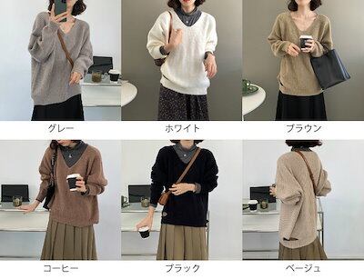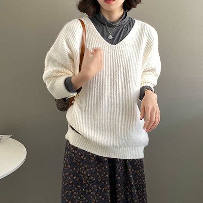 レディース ニット リブニット Vネック セーター 長袖 トップス カジュアル シンプル 大人可愛い クール 休日コーデ おしゃれ お出かけ デイリー 普段着 グレー ホワイト ブラウン コーヒー