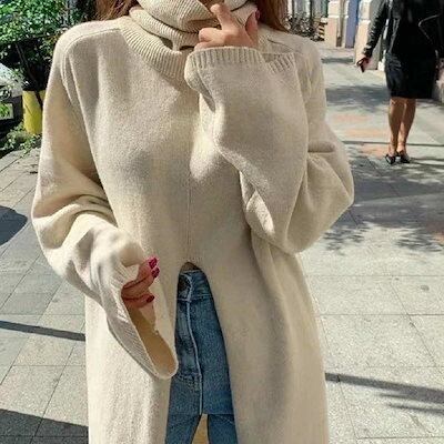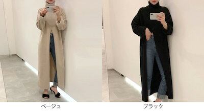 レディース ニット ロング丈 スリット タートルネック ハイネック セーター 長袖 トップス カジュアル 大人可愛い 大人カジュアル 無地 休日コーデ おしゃれ お出かけ デイリー 普段着 ブラ