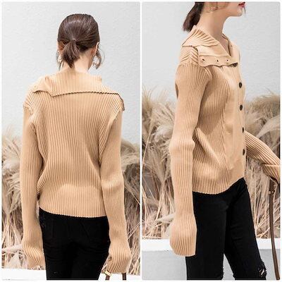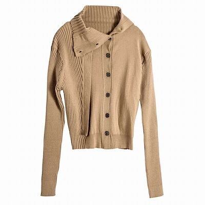 レディース リブニット セーター ハイネック カーディガン タイト 長袖 トップス 秋 冬 カジュアル 大人 可愛い フェミニン おしゃれ お出かけ デイリー 普段着 ライトブラウン S M L サイ