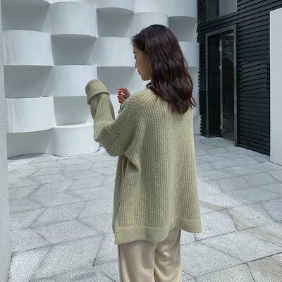 レディース リブニット セーター ざっくり ゆるシルエット 長袖 カットソー トップス カジュアル 大人 可愛い フェミニン おしゃれ お出かけ デイリー 普段着 パープル グリーン フリーサイ