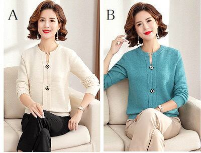 レディース 婦人服 トップス ニット デザインボタン ヘンリーネック ノーカラー リブ袖 ミセス シニア 40代 50代 60代 長袖 ママコーデ カジュアル きれいめ キレカジ オフィス 春秋 デイ