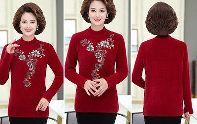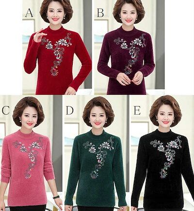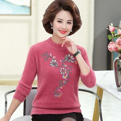 レディース 婦人服 トップス ハイネック セミラグランスリーブ プルオーバー フリースセーター 長袖 花柄 スパンコール カジュアル 大人ファッション きれいめ デイリー オフィス 秋冬 ブラック