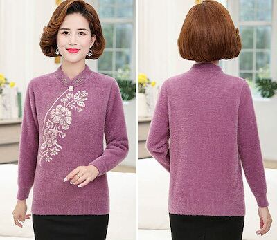 レディース 婦人服 トップス プルオーバー フリースセーター ビジュー 袖リブ編み 長袖 花柄 エレガント 大人ファッション きれいめ キレカジ おしゃれ お出かけ デイリー オフィス 秋冬 レッド