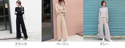 レディース 上下2点セット ニット + ニットパンツ ラウンドネック 長袖 カジュアル 可愛い きれいめ キレカジ おしゃれ お出かけ リラクシー お呼ばれ ブラック ベージュ グレー M L サイズ