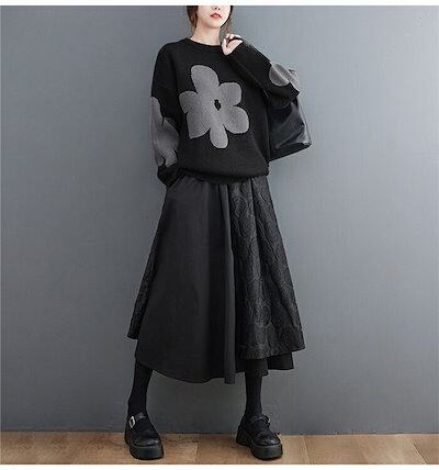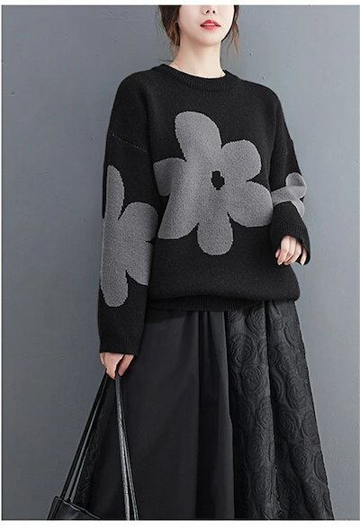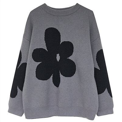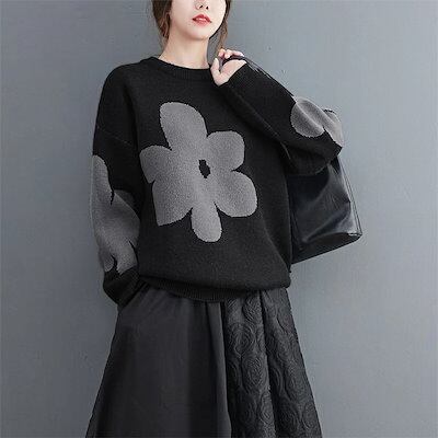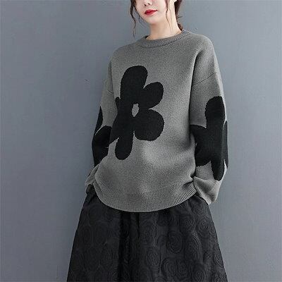 セーター トップス レディース 秋冬 ニットセーター ニット カットソー 花柄 総柄 厚手 長袖 プルオーバーセーター クルーネック 丸首 プルオーバー ゆったり 秋 冬 カジュアル 大人可愛い あっ