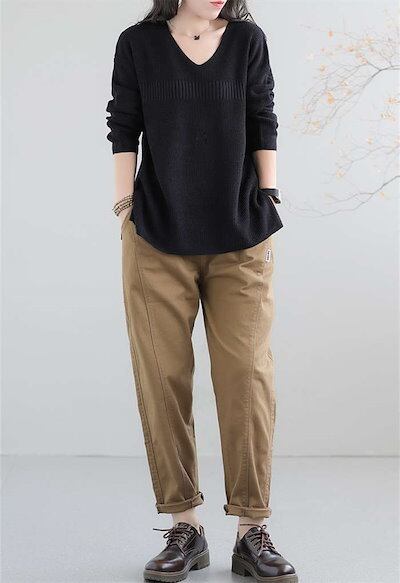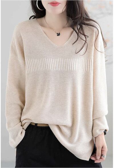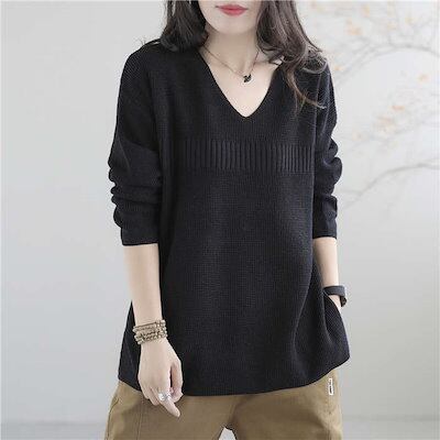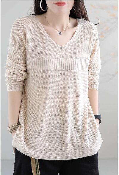 ニット レディース トップス 長袖 秋 冬 ゆったり Vネック プルオーバー オシャレ ライトニット ウール シンプル リブ ニット リブニット カットソー ニットウェア セーター 無地 通勤 オフィ