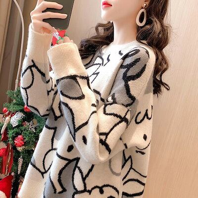 ニットセーター ニットトップス 動物 牛 姉妹服 ペアルック おそろい 友達 クルーネック セーター レディース メンズ トップス 秋冬 長袖 洗え かわいい カットソー 暖かい カジュアル 秋服 秋