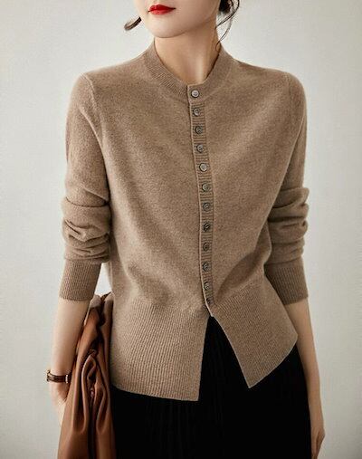ニット カーディガン レディース 春 秋 スリット カーデ トップス 長袖 Uネック ラウンドネック きれいめ 着痩せ セーター トレンド エレガント お洒落 カジュアル 韓国 ファッション