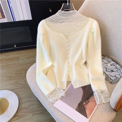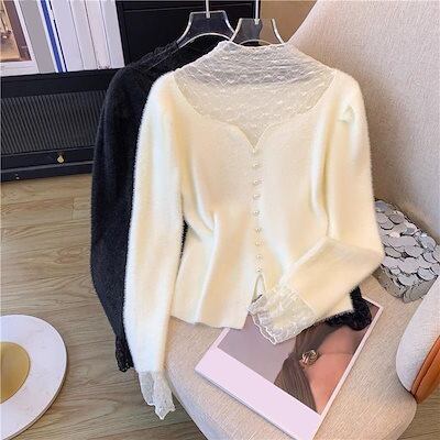 秋冬新作 レース 切り替えインナー 厚手 ハイネックセーター レディースファッション 百掛け 長袖ニット 甘い 気質 プルオーバー トップス