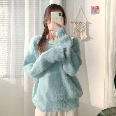 人気なリブニット Tシャツカットソー ミンクセーター レディース 厚手 Vネック ゆったり インナー ニットセーター ベーシックニット