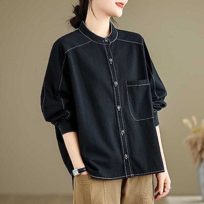 「ファットガール」 2024秋新品 レトロ ブラウス 大きいサイズ 体型カバー レディース スタンド襟 シャツ メガ割