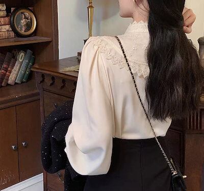 可愛い レディース 立ち襟 オフィス ブラウス レトロ バブル袖 バブル袖 シャツ女 ブラウス トップス ワイシャツ 韓国ファッション レディース 紫外線対策 ロンt シフォンブラウス