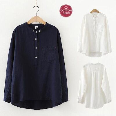 シャツ ブラウス 秋服 レディース 白シャツ コットン100% 長袖 スタンドカラー ゆったり 襟デザイン ボタン 秋ファッションおすすめ商品