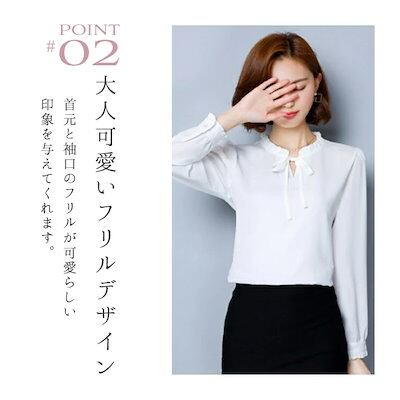 送料無料&即納 上品 リボン ブラウス ボウタイ とろみ シャツ オフィスカジュアル / きれいめ 立ち襟 フリル 襟付き シフォン 長袖 ボウタイブラウス フォーマル オフィス カジュアル レディ
