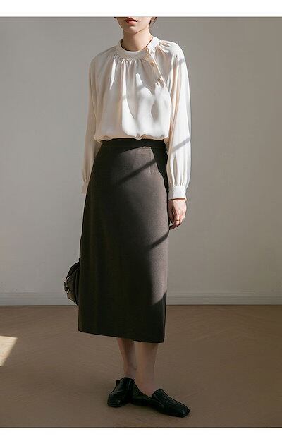 ブラウス レディース 長袖 白ブラウス 襟フリル 無地 シャツブラウス トップス スーツインナー バンドカラー お洒落 可愛い カジュアル フォーマル オフィス エレガント シンプル オフィスカジュア