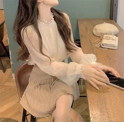 ブラウス 長袖 レディース 襟フリル ブラウス カットソー シフォン スーツインナー トップス フォーマル 無地 オフィス ビジネス お洒落 通勤 カジュアル OL おしゃれ 可愛い 入学式 卒業式