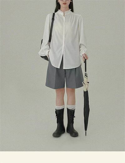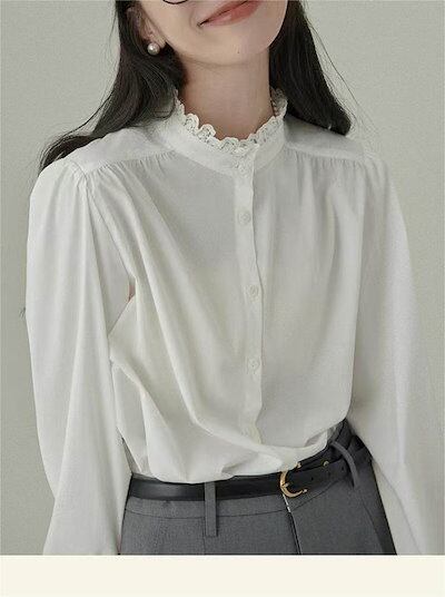 ブラウス レディース 長袖 シャツ スーツ インナー 白シャツ スタンドカラー 襟レース トップス フォーマル 無地 オフィス ビジネス 立ち襟 春秋 お洒落 通勤 カジュアル OL おしゃれ シンプ
