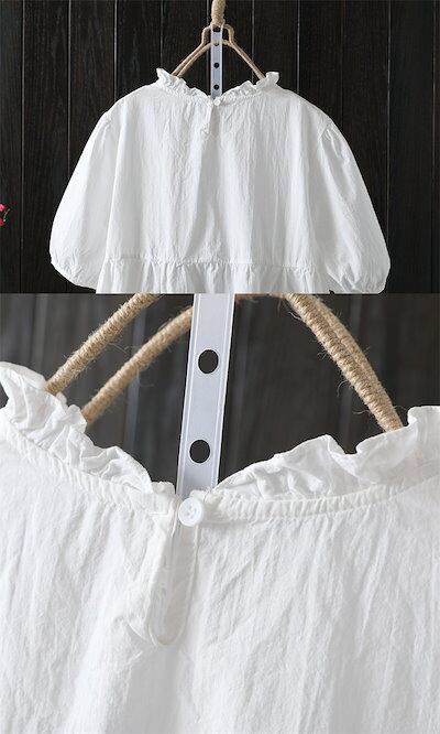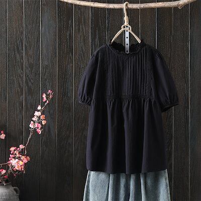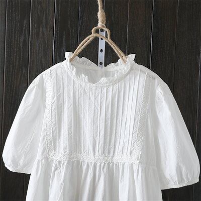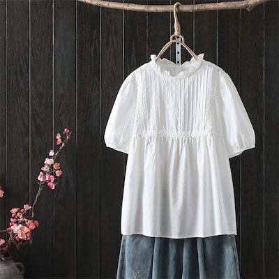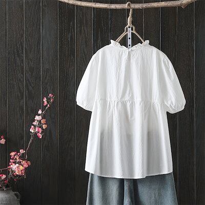 ブラウス フリル襟ブラウス 綿 レディース 半袖 プルオーバー チュニック トップス 夏 コットン ブラウス 大きいサイズ シンプル ナチュラル 爽やか 柔らか ゆったり 肌に優しい 大人 可愛い