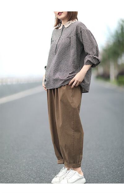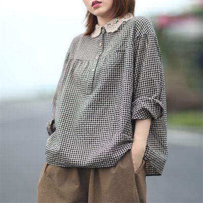 チュニック ブラウス レディース 長袖 チェック柄 レース襟 大きいサイズ Tシャツ プルオーバー トップス ゆったり カジュアル キレイめ ナチュラル 大人可愛い 着?せ 森ガール レッド ブラッ