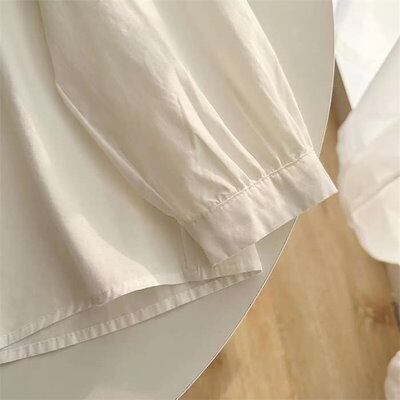 シャツ ブラウス レディース 長袖 白シャツ シャツブラウス トップス 折り襟 無地 可愛い きれいめ お洒落 ベーシック 体型カバー 前開き 通気性良い 通勤 大人 カジュアル ホワイト ブルー M