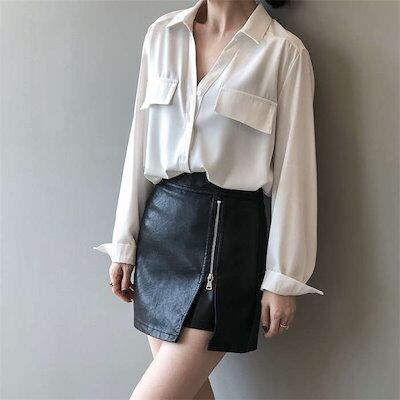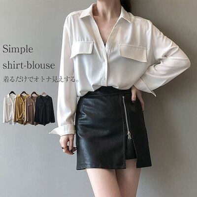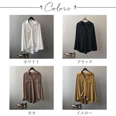 オフェスシャツ ブラウス レディース 長袖 チュニック トップス 折り襟 前開き オフェス フォーマル きれいめ シンプル お洒落 大人 ビジネス 通勤 オフィス OL 無地 ショート丈 とろみ 体型カバー
