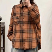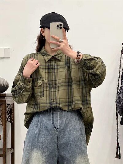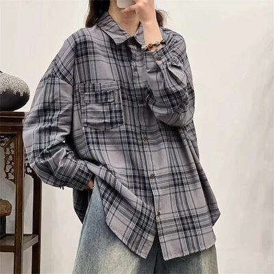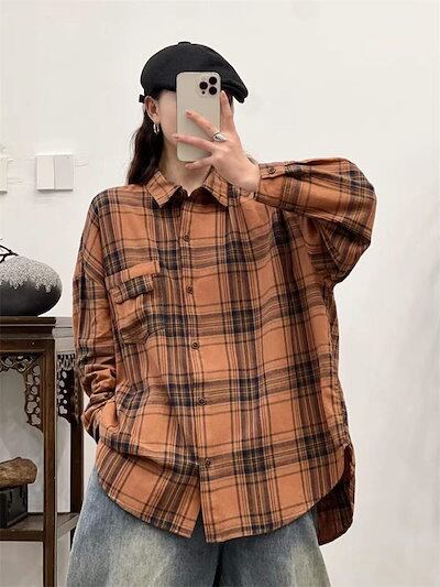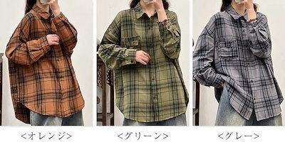 シャツ レディース 長袖 ブラウス チェック柄 トップス オフィス 長袖 折り襟 春秋 おしゃれ ゆったり きれいめ カジュアル 体型カバー お呼ばれ 通勤 通学 卒業式 卒園式 入園式 オレンジ