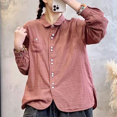 シャツ レディース ブラウス ストライプ 長袖 がーせ 入学式 トップス オフィス 長袖 折り襟 春秋 おしゃれ ゆったり きれいめ カジュアル 体型カバー お呼ばれ 通勤 通学 卒業式 卒園式 入園