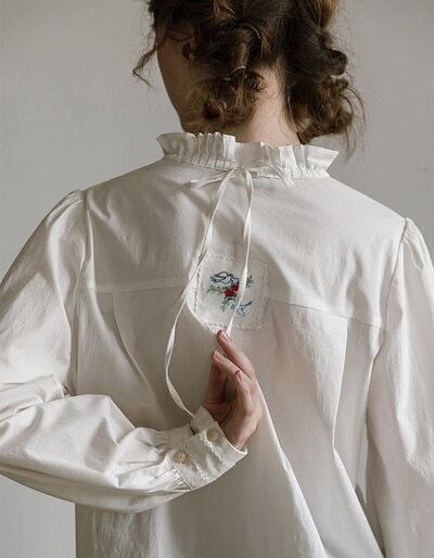 ブラウス 立ち襟 フリル レディース トップス 長袖 フォーマル インナー コットン フリルシャツ 40代 50代 60代 30代 女性 ファッション フォーマル ブラウス 白 華やか 綿 コットン