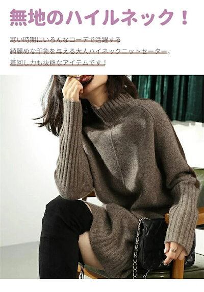 秋冬ファッション ニットワンピース レディース チュニック ハイネック 長袖 丈 ソー タートルネック 長袖 プル ニット ロングセーター 韓国ドレス