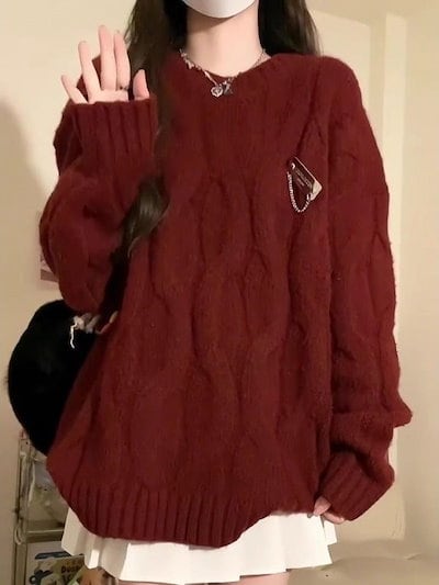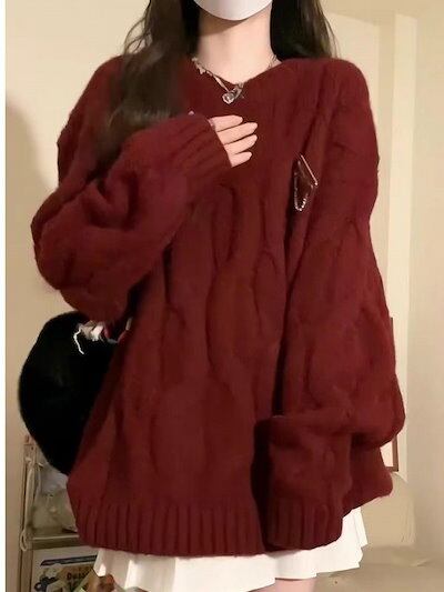 秋 冬 レディースファッション ベーシックニット 赤白 レトロで小人数 オールカラーのクリスマス ニットトップス ニットセーター ニット長袖