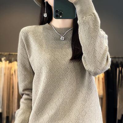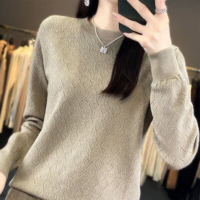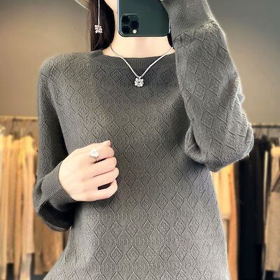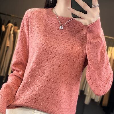 ベーシックニット丸首透かしニットレディース秋冬新作アウター長袖セーターカーディガンゆったり着やせトップス