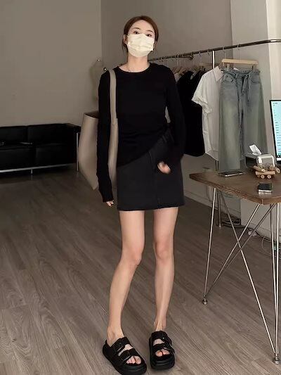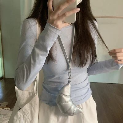 長袖 Tシャツ レディース 2024 日焼け止めスモック 初秋 韓国製 多用途 薄い部分 ボトム トップス ベーシックニット