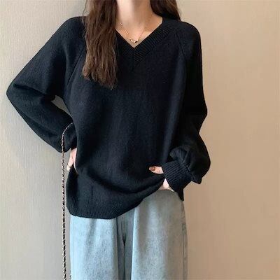 アンダーウェア レディース 秋冬 Vネック セーター ニット 長袖 トップスカシミヤタッチ