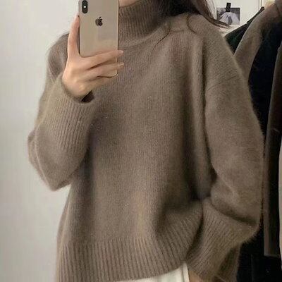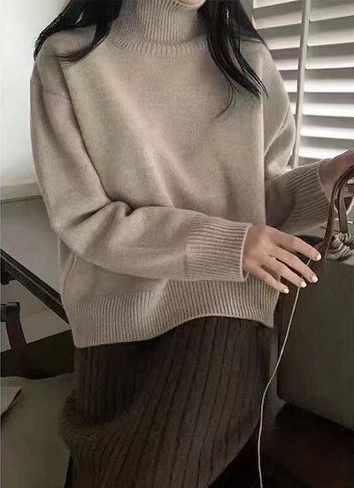 秋冬 タートルネックセーター レディース ゆったり 怠惰風 インナー プルオーバー 厚手 長袖ニット 無地 トップス