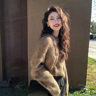 怠惰風 ツイスト セーター レディースファッション 優しい 長袖ニット トップス 秋冬 ゆったり 百掛け ラウンドネックセーター プルオーバー インナー