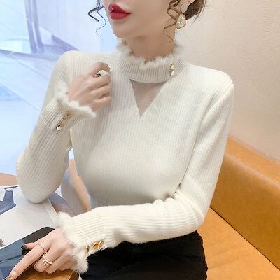 秋冬新作 セーター レディースファッション 裏起毛 インナー トップス 厚手 保温 プルオーバー ハイネック 長袖ニット