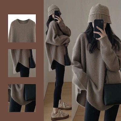 セーター 高級感 優しい オールマッチ 長袖ニット プルオーバー 秋冬 無地 レディース インナー トップス ラウンドネックセーター