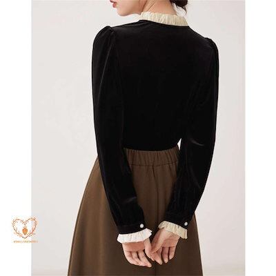 【beifengzh 0 ng】新作ボウタイブラウス 長袖ブラウス シャツ トップス 春 秋 冬 レディース おしゃれ かわいい ゆったり シンプル 無地 上品 ベロア 配色 ボウタイ リボン OL