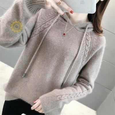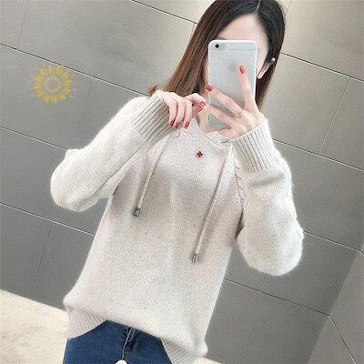 【beifengzh 0 ng】新作ニット セーター 長袖 ニットセーター トップス レディース プルオーバー ニットソー ソフト フード付き Vネック 柄 美しい シンプル カジュアル風 着痩せ 新